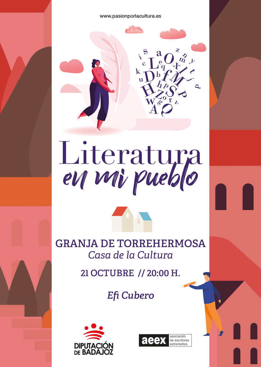 El programa Literatura en mi pueblo nace de la colaboración de la Diputación de Badajoz con la Asociación de Escritores Extremeños (AEEX), con la finalidad de dar a conocer la biografía y la producción literaria de las autoras y autores extremeños, entendiendo por tales los nacidos en la región o los que, siendo naturales de otros lugares, vivan en ella.