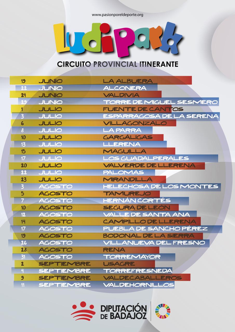 La Diputación de Badajoz, a través del Área de Cultura, Deportes y Juventud, pone en marcha el programa ‘LudiPark”, un parque lúdico-recreativo itinerante dirigido a niños, niñas y jóvenes, de 3 a 14 años, con el objetivo de ofrecerles un espacio de diversión saludable y dinamizada.