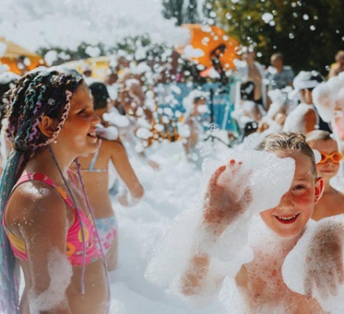 La espuma no es tóxica, no escuece los ojos, es hipoalergénica y no mancha la ropa, aunque si moja, por lo que esta actividad solo puede realizarse en verano.