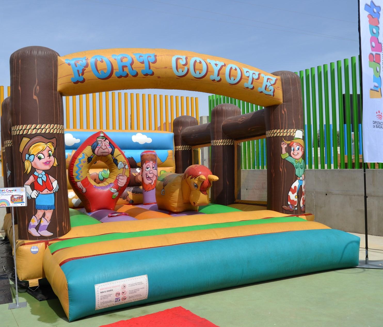 FortCoyote es un castillo hinchable que gusta a los niños, donde saltan sin parar. Esta destinado a los más pequeños ya que dispone de obstáculos sencillos y divertidos para ellos.