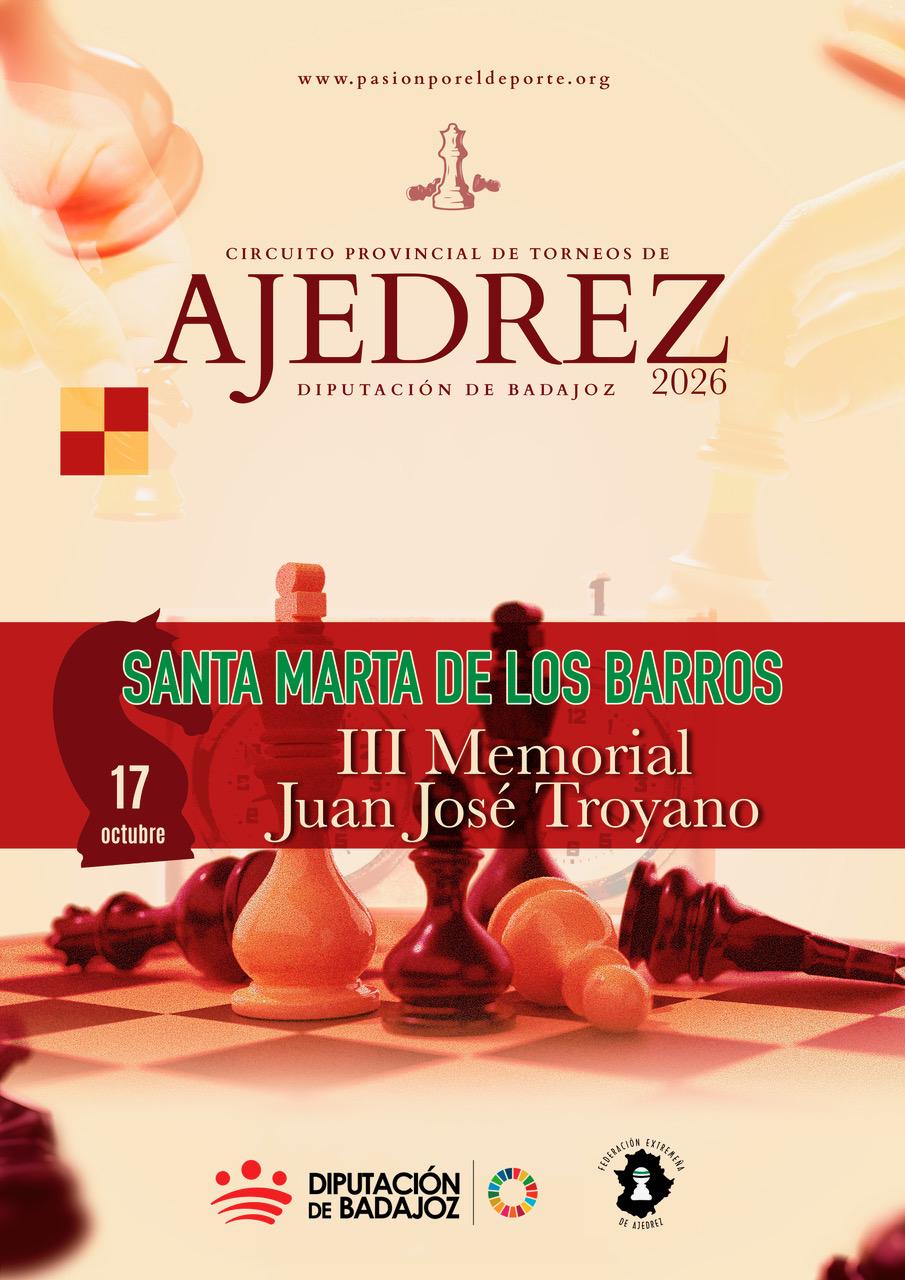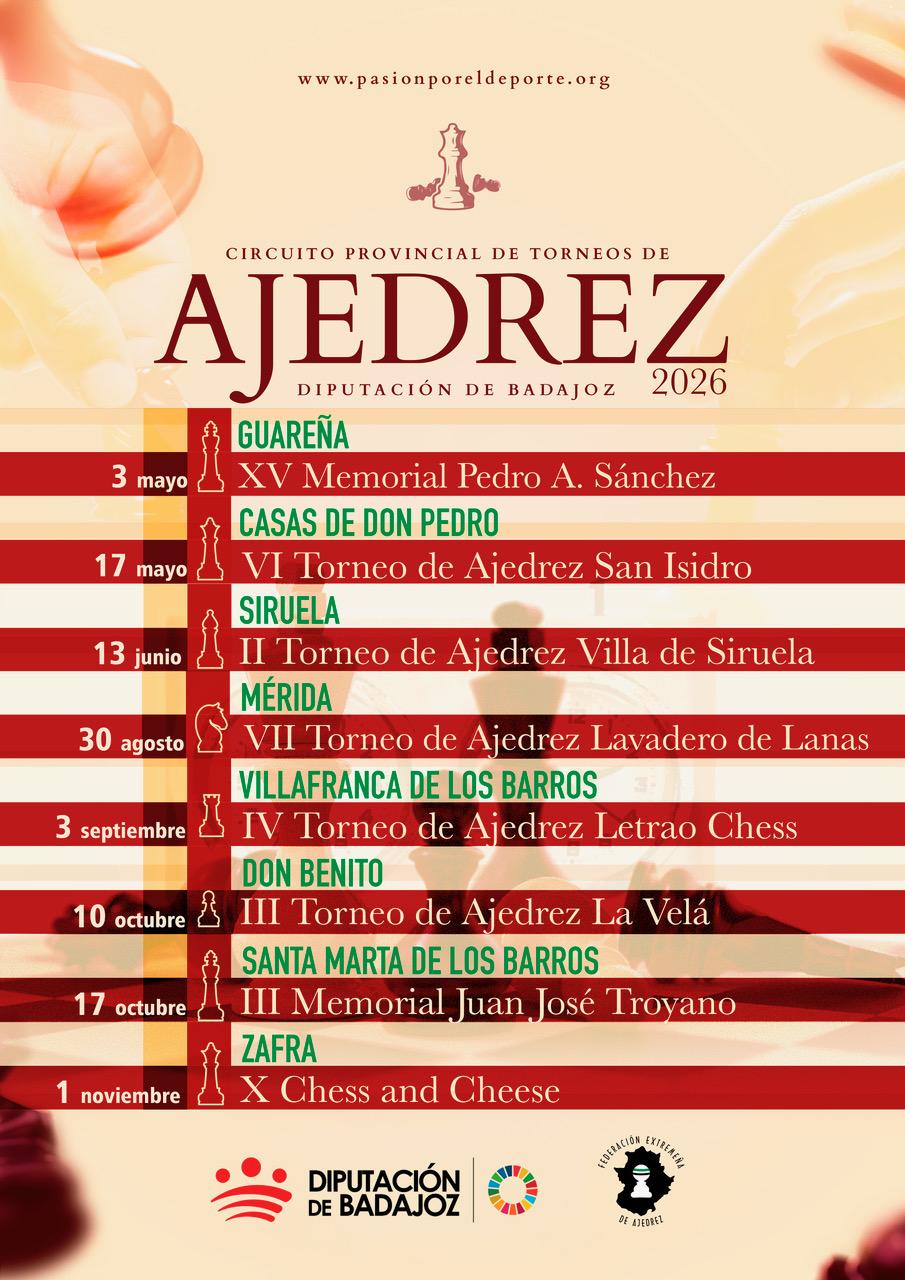 Los Servicios Centrales de Cultura, Deportes y Juventud de la Diputación de Badajoz pone en marcha el “Circuito Provincial de Torneos Ajedrez” en colaboración con la Federación Extremeña de Ajedrez en su apuesta por promocionar el deporte en sus distintas modalidades.