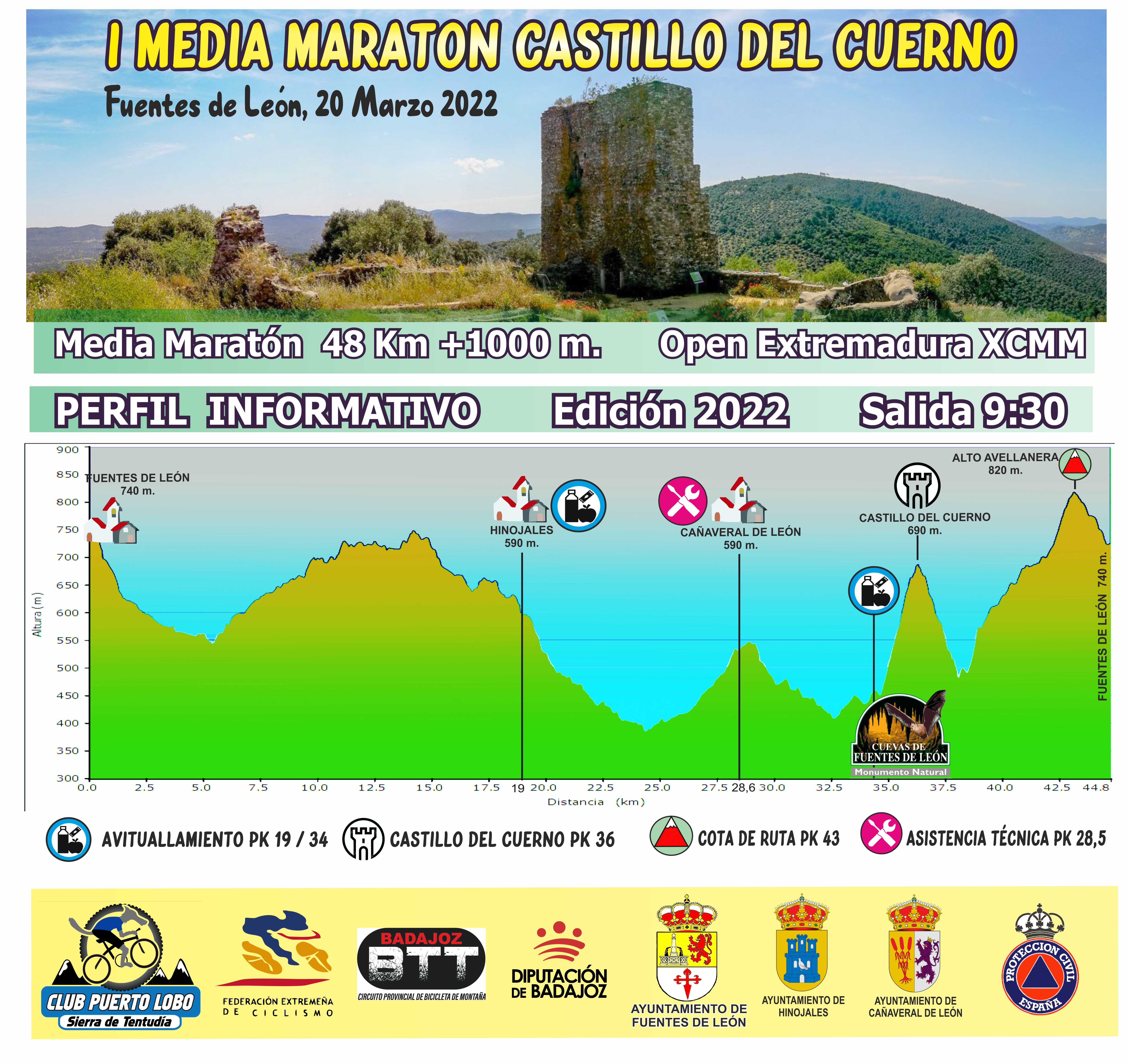 La prueba discurre por el entorno del Monumento Natural Cuevas de Fuentes de León y Castillo del Cuerno, entre las localidades de Fuentes de León, Hinojales y Cañaveral de León.