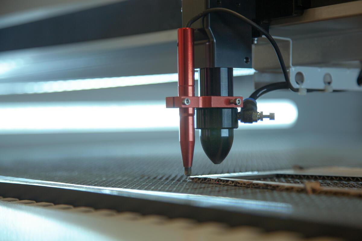 Cortadoras láser de CO2 Estas máquinas, que cuentan con un gran área de trabajo a la vez que precisión, permiten cortar y grabar materiales como plásticos, maderas, corcho, cuero, caucho, telas, goma eva... La forma de trabajar se basa en la gran potencia del láser, que consigue vaporizar el material y así realizar los cortes. Existen algunas limitaciones en cuanto a los materiales, ya que no permiten trabajar metales, determinados plásticos (PVC, teflón...) o cristales.