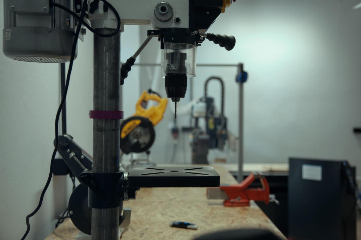 Herramientas eléctricas y manuales de taller tradicional Estas máquinas y herramientas pretenden complementar al resto de equipos de fabricación digital: sirven para cortar y preparar los materiales, dar el acabado final a los prototipos, o simplemente para realizar trabajos simples que no requieren utilizar equipos complejos controlados por computador. Algunas de las herramientas que pueden encontrarse en el taller tradicional: taladro, lijadora, sierra, amoladora, ingletadora, esmeriladora, compresor de aire, carros con herramientas...