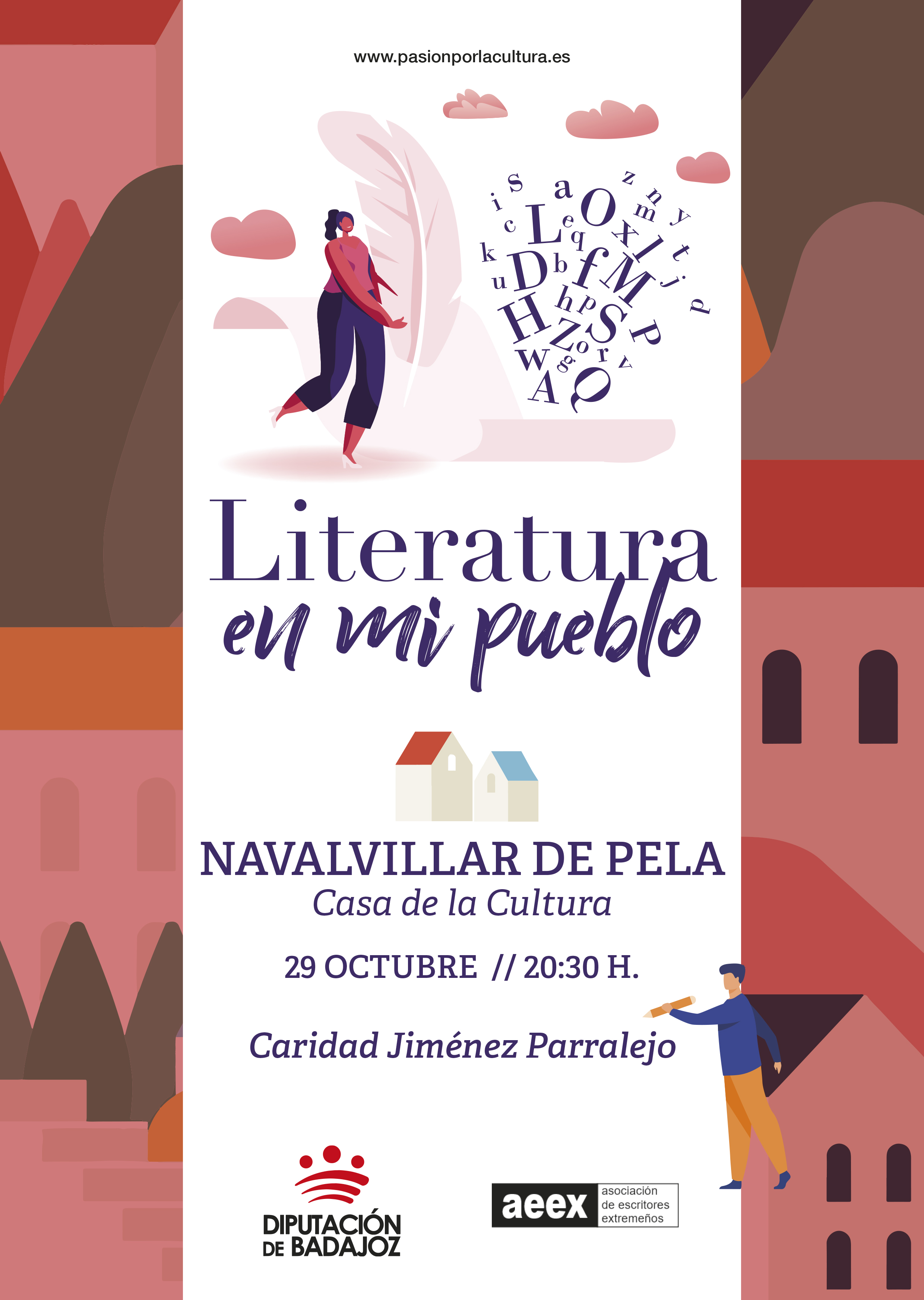 El programa Literatura en mi pueblo nace de la colaboración de la Diputación de Badajoz con la Asociación de Escritores Extremeños (AEEX), con la finalidad de dar a conocer la biografía y la producción literaria de las autoras y autores extremeños, entendiendo por tales los nacidos en la región o los que, siendo naturales de otros lugares, vivan en ella.