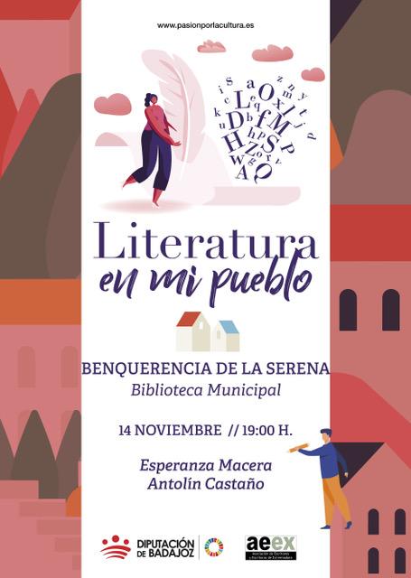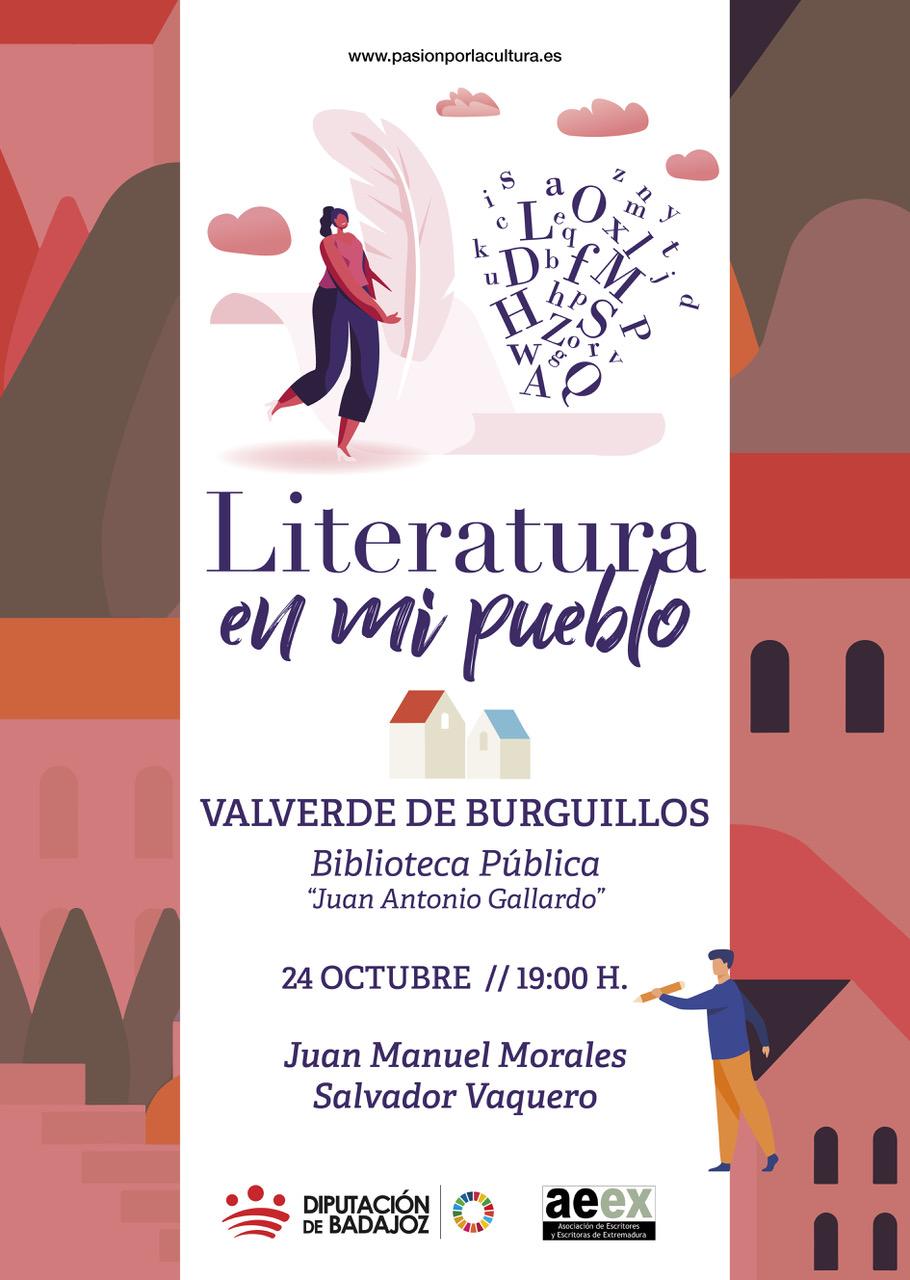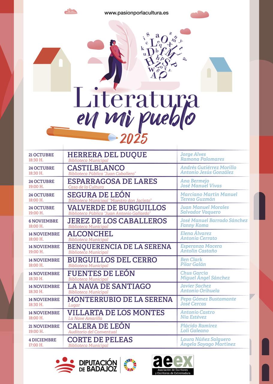 El programa Literatura en mi pueblo nace de la colaboración de la Diputación de Badajoz con la Asociación de Escritores y Escritoras de Extremadura (AEEX), con la finalidad de dar a conocer la biografía y la producción literaria de las autoras y autores extremeños, entendiendo por tales los nacidos en la región o los que, siendo naturales de otros lugares, vivan o tengan una especial vinculación con ella.