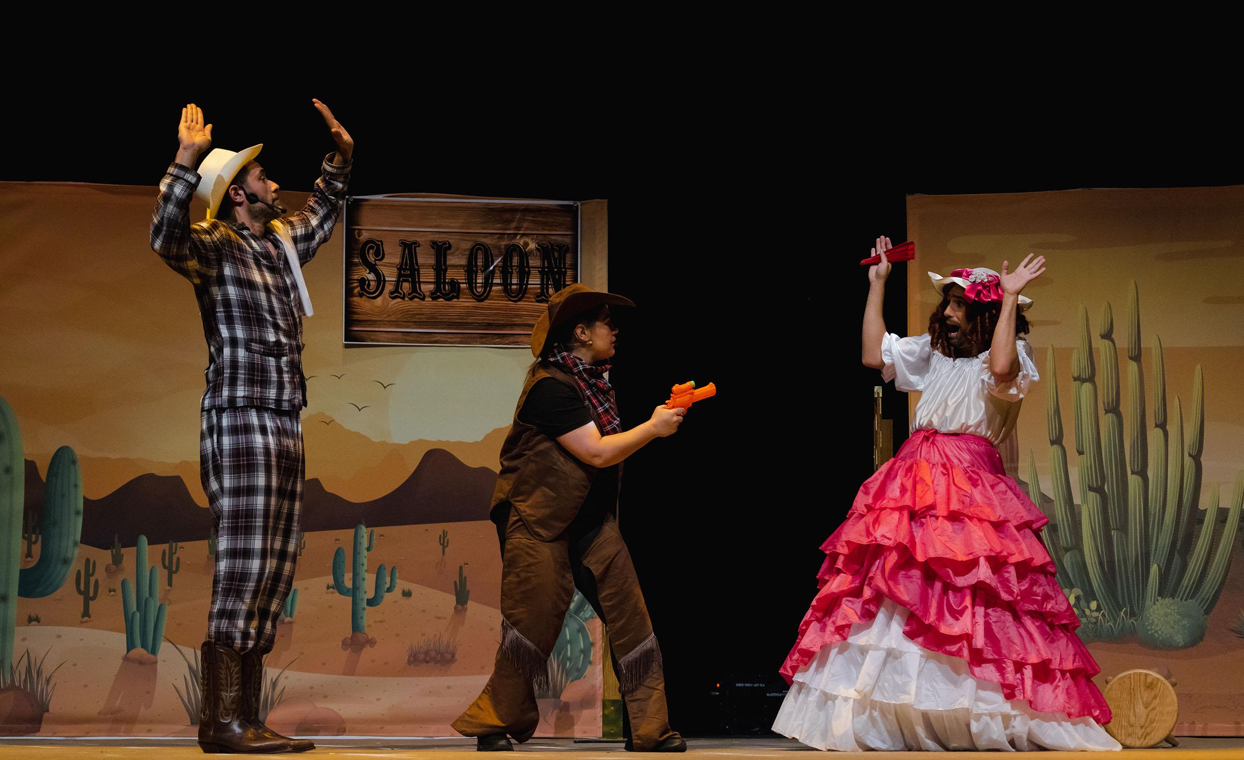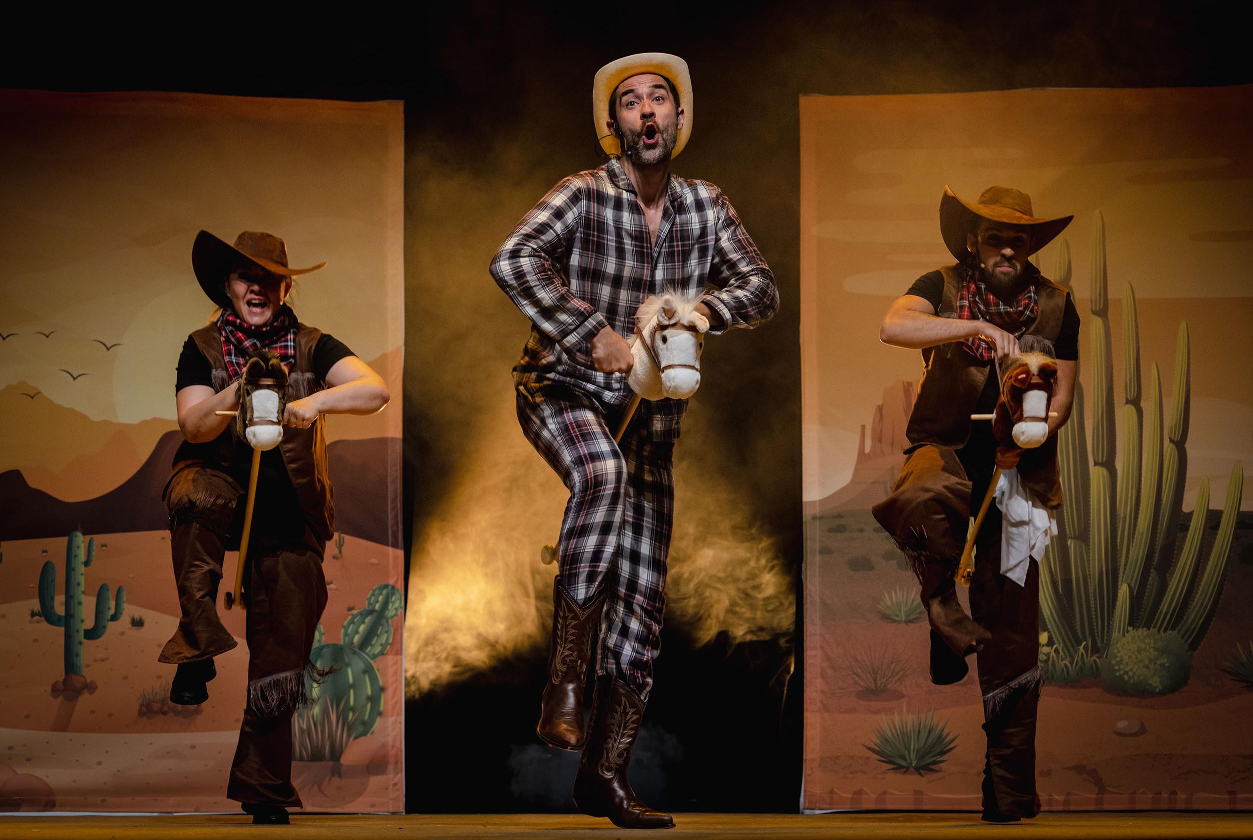 Macario regresa del trabajo y lee uno de sus cómics del oeste antes de dormir, en pleno sueño, acaba trasladándose al viejo y salvaje oeste donde vive locas aventuras en una taberna muy peculiar, huye de forajidos, es rescatado por una damisela y juntos consiguen capturar a un peligroso bandido. Un espectáculo familiar y muy gamberro para toda la familia con una música original de Chloé Bird al más puro estilo western.