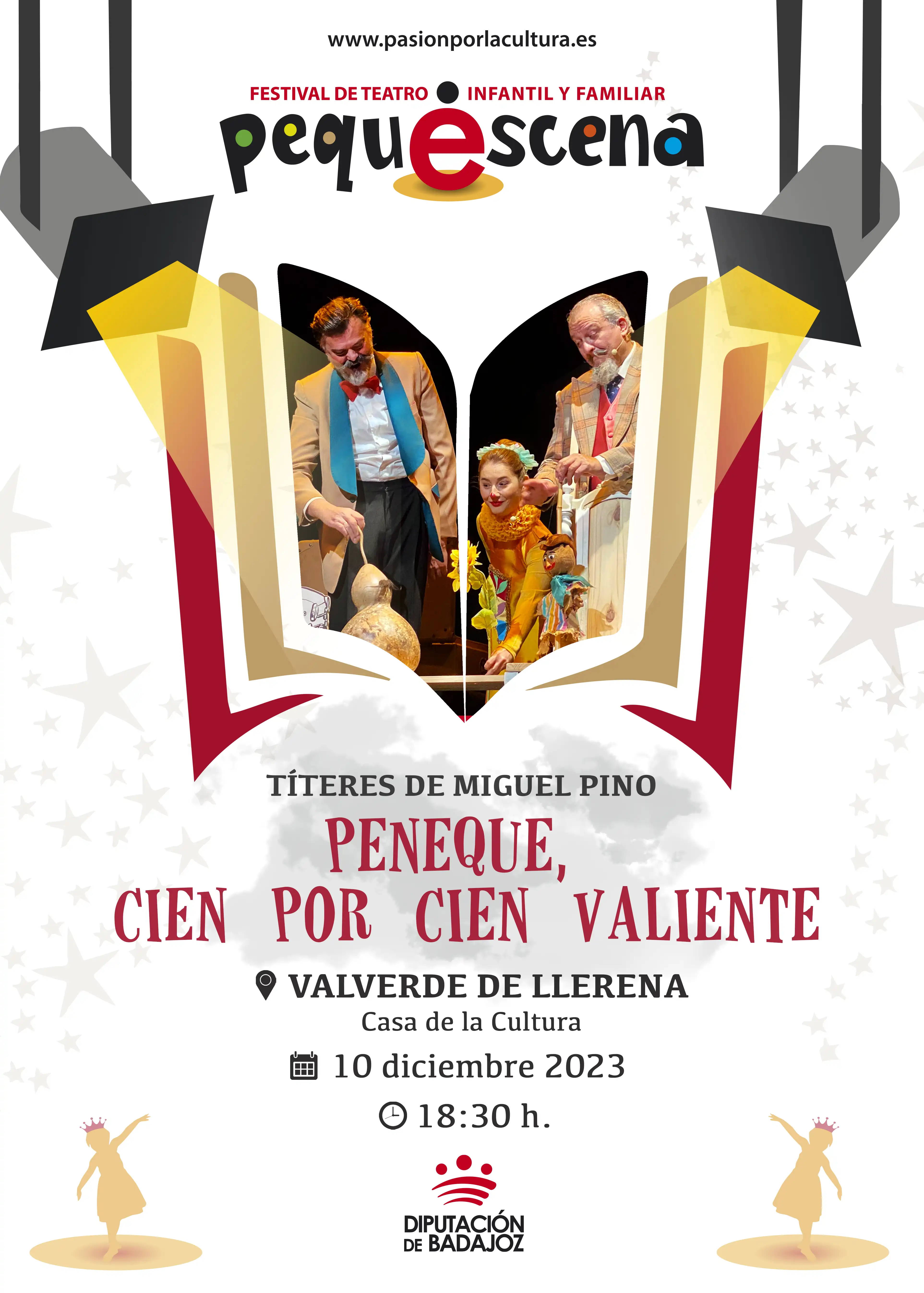 El Área de Cultura, Deportes y Juventud de la Diputación de Badajoz, en su línea de promoción del teatro, pone en marcha el Festival de Teatro Infantil y Familiar Pequescena, con el propósito de acercar una selección de espectáculos a los más pequeños y a sus familias. Las obras son variadas, divertidas y didácticas para que los niños y las niñas aprendan mientras disfrutan de representaciones en directo.