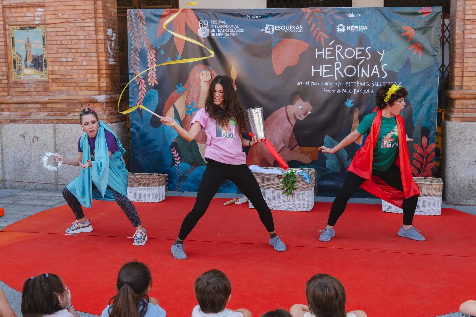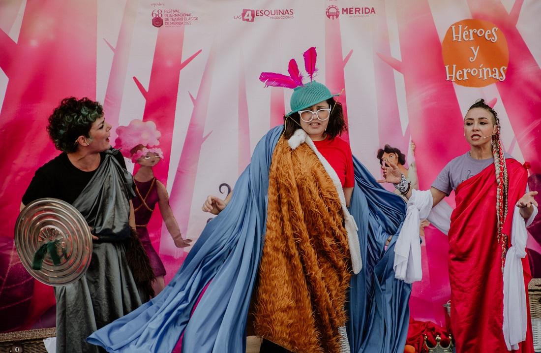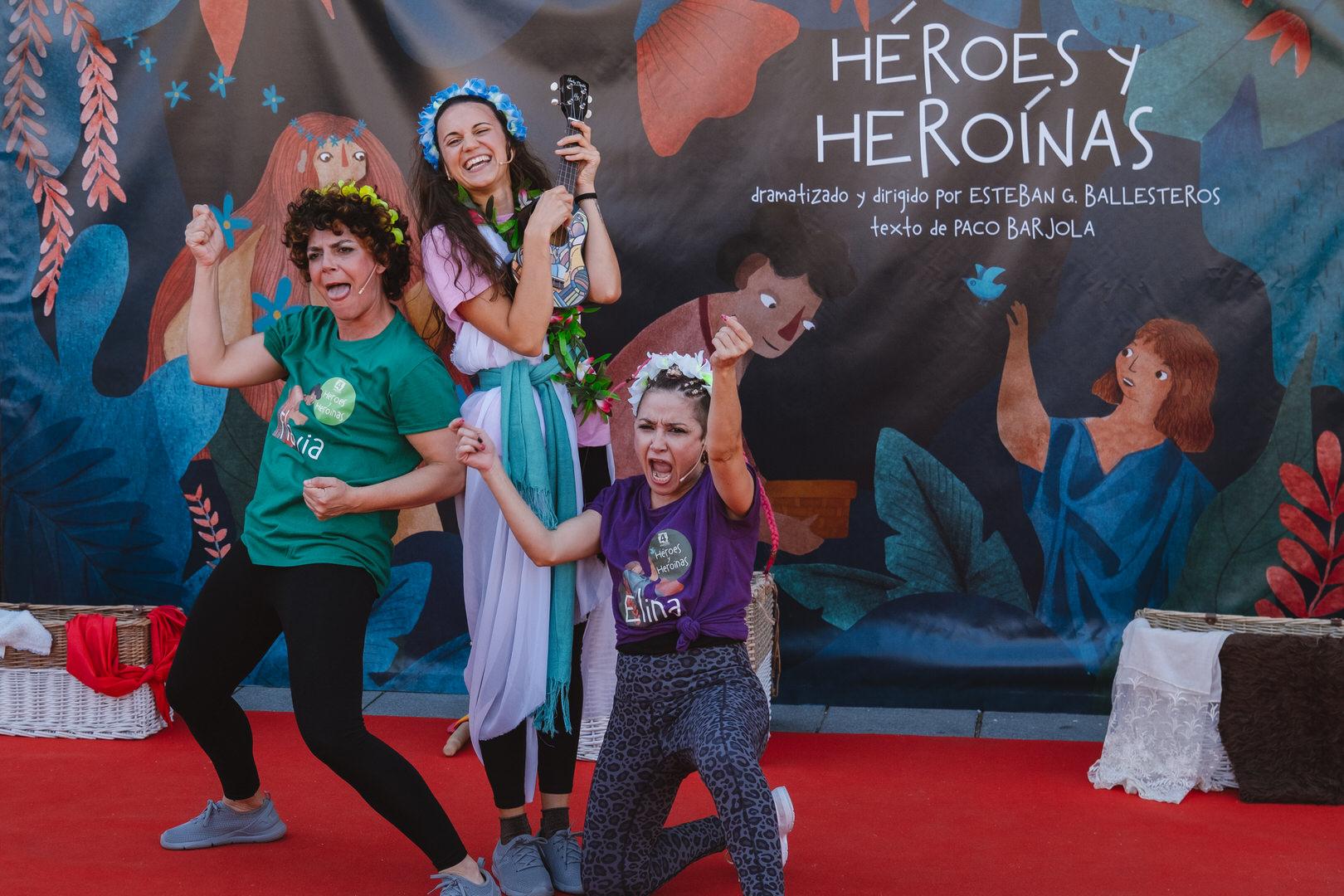 En “Héroes y heroínas” tres personajes, Dionne, Elina y Flavia, pondrán en pie tres historias llenas de acción, magia, música y aventuras. La mitología grecolatina, tan actual siempre, será contada desde el punto de vista del personaje más inesperado: aquel o aquella que está siempre a la sombra del héroe clásico. Descubriremos así que el destino no está escrito, sino que somos nosotros y nosotras con nuestras decisiones, quienes forjamos nuestro futuro. En ese viaje, el público verá tres historias independientes repletas de valores feministas, que abogan por la integración, la igualdad y el respeto, cargadas de personajes poliédricos donde ni los malos son tan terribles, ni los buenos tan perfectos. Una forma de acercar la mitología clásica de una manera didáctica y lúdica a un público familiar.