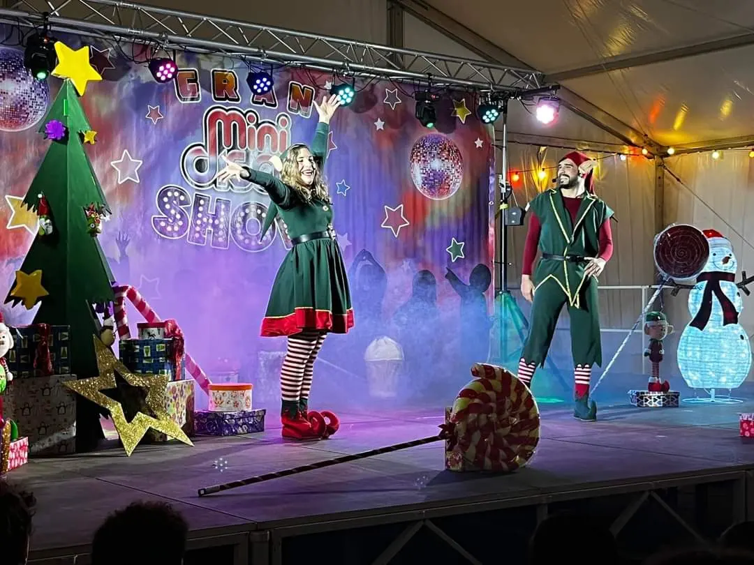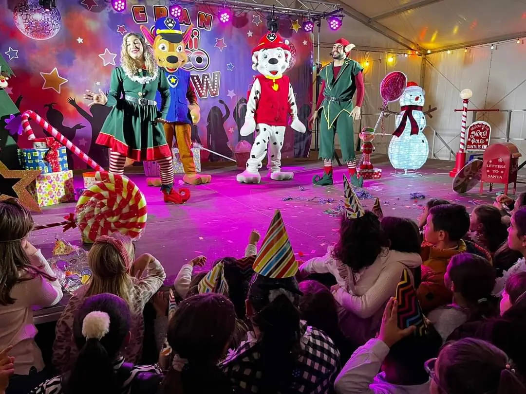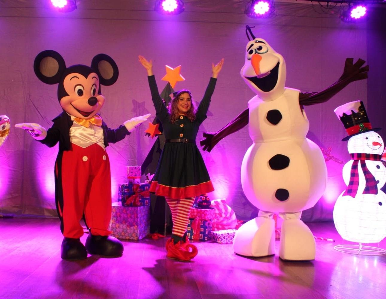 Disfrutaremos de la fiesta de Navidad a lo grande con nuestros protagonistas. Disfraces, bailes, color y cañón de confetis vestirán el escenario. Un espectáculo donde los niños y niñas se convertirán también en protagonistas de este Gran Show junto con los personajes más famosos de la TV infantil, ellos son: Mickey y Minnie, Peppa Pig, la Patrulla canina y muchas sorpresas más. Espectáculo de animación, teatro, música y mucho baile.