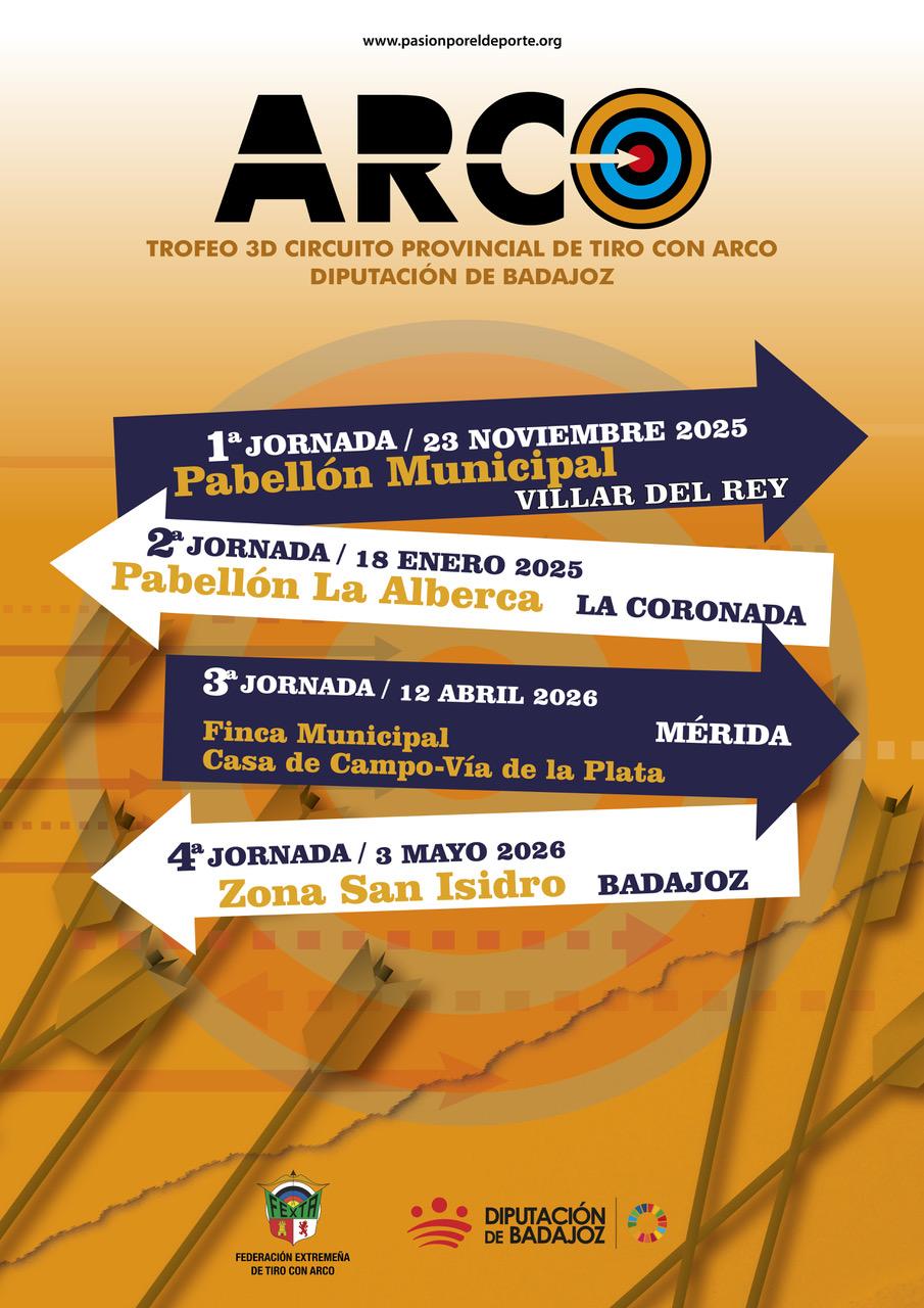 El Circuito Provincial de Tiro con Arco de la Diputación de Badajoz se organiza en colaboración con la Federación Extremeña de Tiro con Arco (FEXTA) y los clubes de la provincia que cuenten con licencia en vigor.